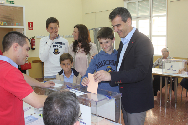 El candidato del PP a la Alcaldía de Guadalajara ha votado a las 12 horas acompañado de su familia.