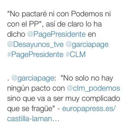 No hace mucho, justo después de que le saliera mal su aventura en Madrid, Page se dejaba querer en los diarios nacionales ejerciendo de algo que no es. En esas amables entrevistas hablaba de todo como si supiera de todo y en ellas no se cansaba de repetir que no pactaría con Podemos (