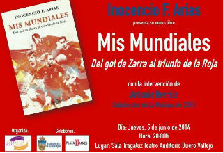El diplomático y ex Director General del Real Madrid Inocencio Arias, presentará este jueves 5 de junio a las 20.00 horas en la sala Tragaluz del Teatro Buero Vallejo su libro “Mis Mundiales”, del gol de Zarra hasta el triunfo de “La Roja”. Es un recorrido por la historia de la selección española de fútbol desde aquel mítico tanto en Maracaná en el Mundial de Brasil’50 hasta el “Iniestrazo” en Sudáfrica en 2010.
