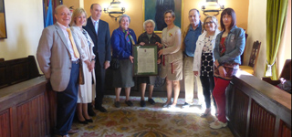 La máxima responsable de la Institución Provincial tuvo ocasión de charlar con ella en el ayuntamiento seguntino con el alcalde José Manuel Latre y concejales de la Corporación, donde también estuvieron presentes familiares de la centenaria.
