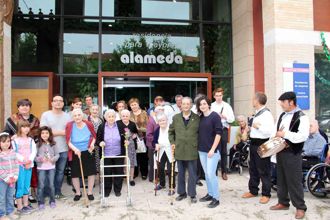 En la residencia de Saturnino López Novoa esperaba Esperanza Juberías. Ella, animosa y dispuesta, ha sido la instigadora principal de la construcción del arco, a la que los residentes se entregan con esmero. “Las flores están hechas de papel, las letras las han coloreado los mayores, las hojas que recubren la estructura del arco están clavadas una por una… Llevamos más de un mes preparándolo. A los mayores les hace una ilusión enorme, ellos mismos se motivan y te motivan a ti, así que cuando llega el jurado y lo ve, es un momento muy especial”, decía la que es terapeuta ocupacional de la Residencia. Como el año pasado, allí estaba María Ranz, que con ochenta y tres años bailó la jota como lo hacía hace sesenta en Cardeñosa, el pueblo donde nació. Para ellos fue el segundo premio del concurso.