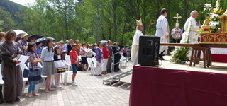 En el incomparable marco del Barranco de la Hoz y junto al santuario de la Virgen con el mismo nombre, la máxima responsable de la Institución Provincial ha tenido ocasión de compartir los actos de la jornada con decenas de vecinos e hijos de los pueblos de la zona, así como con la diputada nacional, Encarnación Jiménez, el director general de telecomunicaciones y nuevas tecnologías, Daniel Martínez Batanero, el concejal de Molina y diputado provincial Luis Palacios, el Capitán de la Guardia Civil y Jefe de la Compañía de Molina de Aragón, José Miguel Foronda Fernández, y el presidente, Sergio Ribalda Vicente y resto de miembros del Patronato del Santuario de la Virgen de la Hoz.