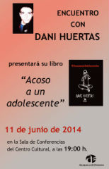 La Biblioteca Municipal Almudena Grandes celebra este miércoles un nuevo encuentro con autor que protagonizará Dani Huertas, vecino de Azuqueca de Henares y alumno de primero de Bachillerato del instituto Profesor Domínguez Ortiz. Huertas presentará su primera novela, #AcosoaunAdolescente, a partir de las 19 horas en la sala de conferenciasde la Casa de la Cultura.