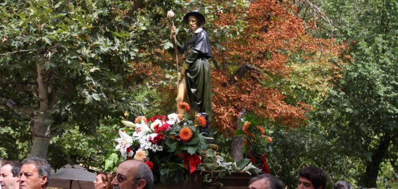 Después de la homilía, el Santo salía en procesión precisamente por el barrio que la ciudad doncelina le dedica a su patrón. Acompañada por la música de las dulzainas, la procesión recorrió el Paseo de La Alameda, para regresar a la Iglesia por la calle de San Roque. La talla, una obra del siglo XX, pero con reminiscencias barrocas, fue portada por devotos seguntinos hasta su regreso a la Iglesia, al filo de la una y media de la tarde. Los dulzaineros acompañaron musicalmente la procesión.
