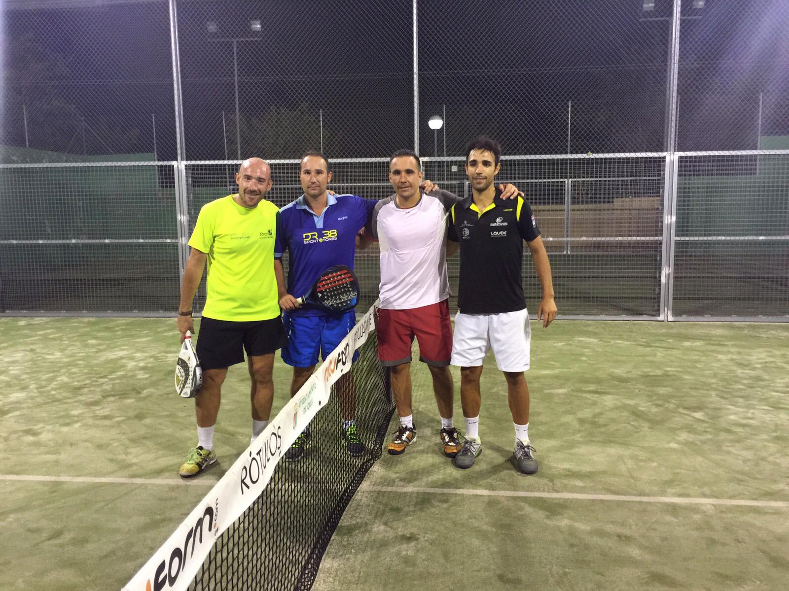 A partir de las 20:00 horas de la tarde, comenzaba la exhibición de pádel, que inicialmente se iba a haber llevado a cabo el domingo, día 30 de agosto, pero que hubo de ser suspendida por el temporal de aire y agua que azotó la campiña. El partido lo disputaron cuatro de los mejores jugadores del Corredor del Henares, madrileño y guadalajareño. David Lapastora, extraordinario jugador y excelente persona que ha participado ya en algún evento benéfico en Quer, y Angel, se enfrentaron a Sergio Alba y Angel Morales. Vencieron Morales y Alba por dos sets a uno. La grada de la pista se llenó para ver las evoluciones de los jugadores que levantaron en muchos momentos los aplausos del público. Al terminar el partido, el alcalde de Quer, José Miguel Benítez, se acercó para felicitar a los contendientes por el espectáculo magnífico que ofrecieron al público.
