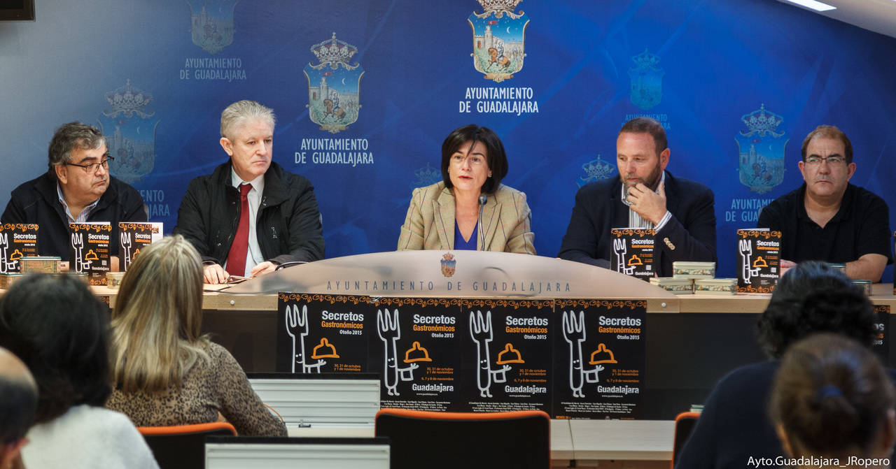 Isabel Nogueroles, concejal de Turismo, acompañada por Juan Luis Pajares, presidente de la Federación de Turismo de Ceoe-Cepyme, y de una nutrida representación de hosteleros locales, ha presentado hoy una iniciativa que desde su implantación, en 2010, ha hecho de la gastronomía y la cultura “uno de los principales reclamos turísticos de Guadalajara”, según ha señalado la edil responsable de esta propuesta.