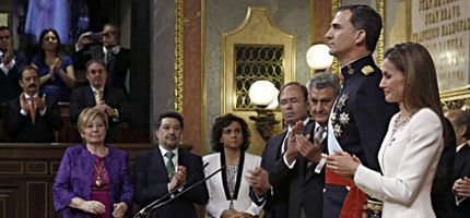 Felipe VI habló en dos ocasiones de una "Monarquía renovada para un tiempo nuevo". "Y afronto mi tarea con energía, con ilusión y con el espíritu abierto y renovador que inspira a los hombres y mujeres de mi generación", añadió.
