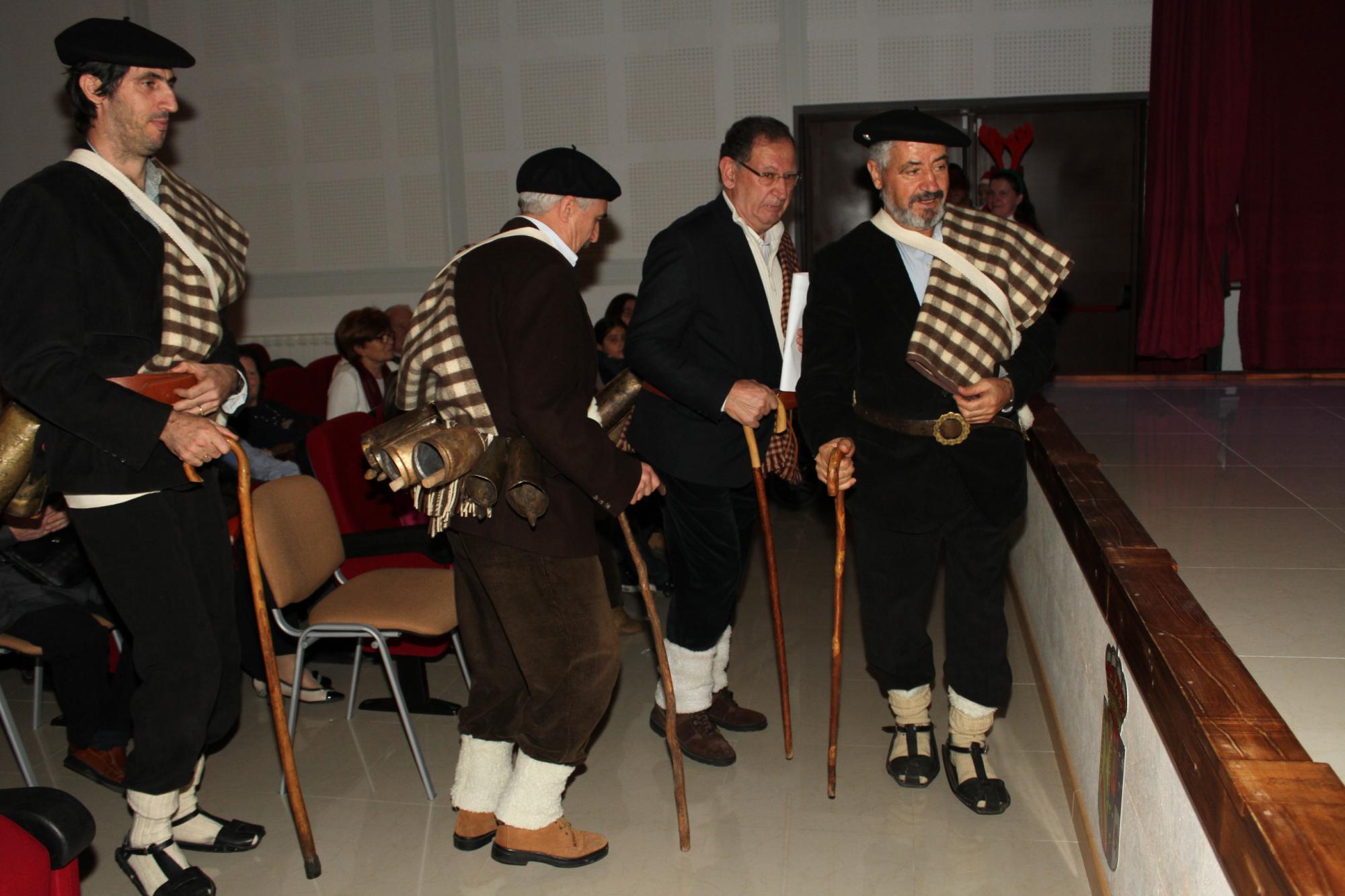 Desde el fondo del Salón de Actos, lleno, salieron a continuación los Cencerrones de Cantalojas, siempre seguidos del espectacular sonido de sus zumbas. Para abrir boca, Antonio Garrido cantó un romance “típico de nuestro pueblo, que yo, siendo un niño, les oía cantar a los pastores”, explicaba después. Según Garrido, no era Cantalojas el único lugar en el que se entonaban estas pastoradas, “aunque nosotros las hemos conservado”. A partir del día ocho de diciembre, los ovejeros, “muchos recorriendo grandes distancias desde las tainas donde cerraban el ganado hasta el pueblo, con unas nevadas grandísimas, las calles llenas de barro y con unas abarquillas en los pies, que era lo que único que podían calzar en la época, se reunían en la plaza, para darle la vuelta al pueblo, cantando”, recordaba ayer el músico. Al pasar por la Iglesia, los pastores hacían un alto para entonar sus romances. Luego, regresaban a la Plaza, y hacían el más conocido de todos ellos, el de 'La loba parda'. “Ellos, que vivían de su soldada, como mucho 28 fanegas de trigo al año, unas pocas ovejas, y con familias muy largas, eran gente alegre y siempre fiel a sus tradiciones. No faltaba quien en el bar les invitaba a un cuartillo de vino”, seguía. Cuando llegaba la Nochebuena, los pastores eran protagonistas en la Misa del Gallo. “Al llegar a la Iglesia, paraban en la puerta, y pedían permiso a las autoridades para poder pasar adentro. La letra de una pastorada, así lo refleja. Cuando se lo daban, atravesaban la nave central de la iglesia, con los cencerros. Se colocaban a los dos lados del altar, y mientras el pueblo subía a adorar al niño, ellos cantaban”, explicaba. El Domingo de Pascua, los pastores de Cantalojas llevaban dos carneros, “a modo de mascota” a la Misa, “a los que engalanaban con flores” y hacían la ofrenda “de una cordera al señor”. Toda esa tradición popular transmitida de padres a hijos fue la que los Cencerrones revivieron anoche, en Tamajón. Además de los romances, los Cencerrones de Cantalojas hicieron otros dos villancicos, uno de los más conocidos del grupo, el