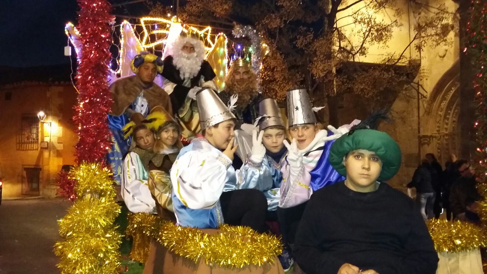Fue precisamente en la Residencia Virgen de la Luz donde Melchor, Gaspar y Baltasar hicieron su primera parada en la villa. Después de entregarles un detalle a cada uno de los mayores, y de tomar unos dulces con los que coger fuerzas para la mágica noche de Reyes, los orientales subieron a la carroza para llegar en ella, recorriendo vistosamente las calles de Almonacid, hasta la Iglesia de Santo Domingo de Silos. Como tienen por costumbre, adoraron al niño y le hicieron las correspondientes ofrendas.
