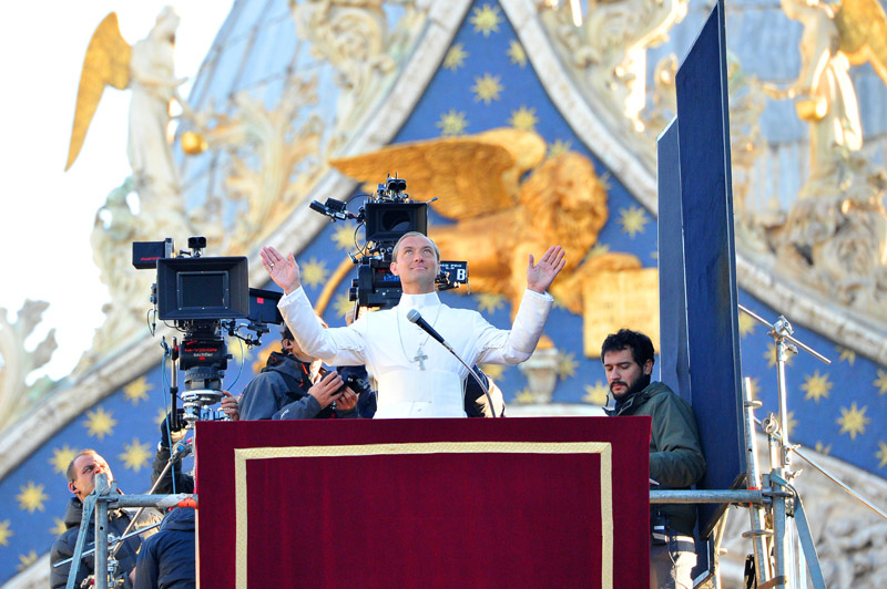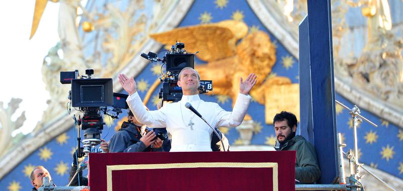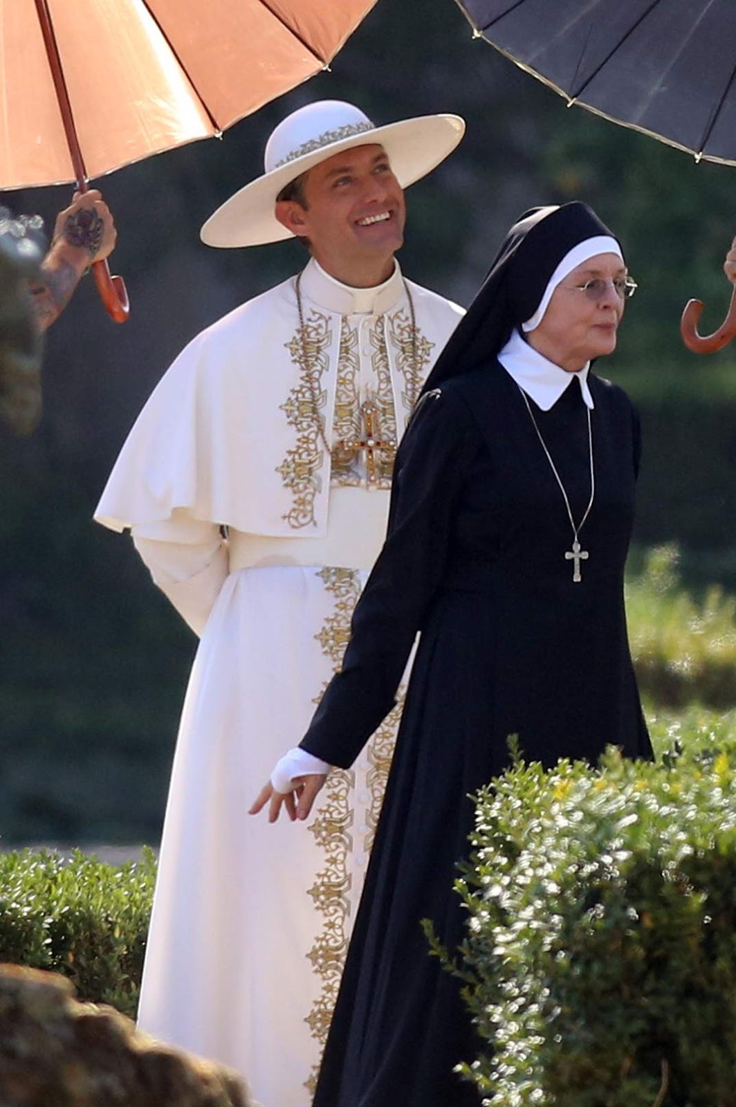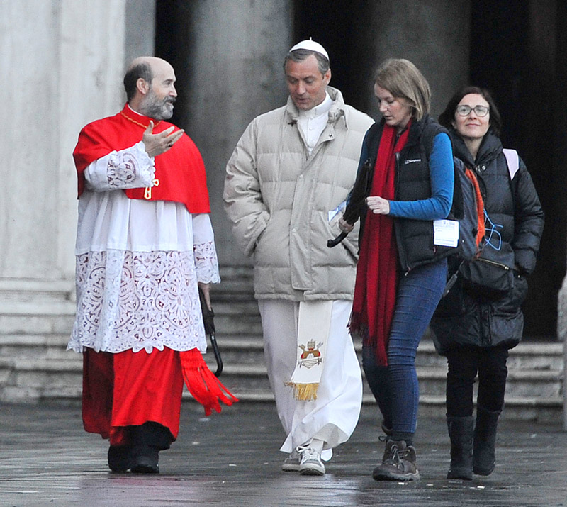 Tal y como podemos ver en las instantáneas, Law se ha tenido que someter a un cambio de imagen para dar credibilidad a su personaje de Sumo Pontífice.