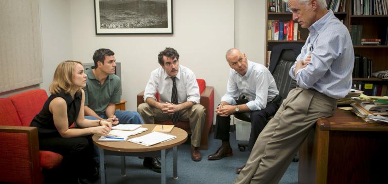 Reparto: Mark Ruffalo, Michael Keaton, Rachel McAdams, Liev Schreiber, John Slattery, Brian d'Arcy James,Stanley Tucci, Elena Wohl, Gene Amoroso, Doug Murray, Sharon McFarlane, Jamey Sheridan, Neal Huff, Billy Crudup, Robert B. Kennedy