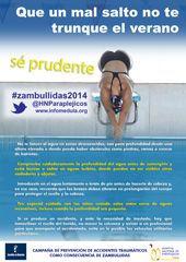 El cartel de 2014 "Que un mal salto no te trunque el verano, ni la vida" se puede encontrar para imprimir en alta calidad en la web del Hospital Nacional de Parapléjicos www.infomedula.org, para su libre uso y ubicación en las piscinas públicas y privadas y en cualquier zona de baño de España.