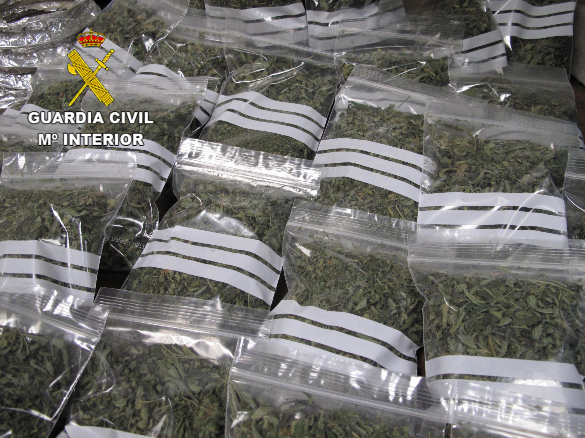 La Guardia Civil de Guadalajara ha detenido a una persona, en el término municipal de Gajanejos, como presunta autora de un delito contra la salud pública por tráfico de drogas, habiéndosele incautado 1.136 gramos de cannabis sativa (marihuana), un bote que contenía setas alucinógenas y una pequeña cantidad de hachís.
