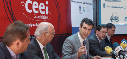 El alcalde, Antonio Román, ha presentado el "Living Lab de Guadalajara", que pretende ser un espacio de innovación abierta donde se desplieguen nuevas tecnologías y se verifique su funcionamiento a través de la interacción real con los ciudadanos. Para ello, ha estado acompañado de Rafael Fando, Director General del Centro de Innovación de Infraestructuras Inteligentes, Pablo Hyam, Gerente Técnico del CI3 y Alberto López Oleaga, Director de Innovación de Ferrovial.