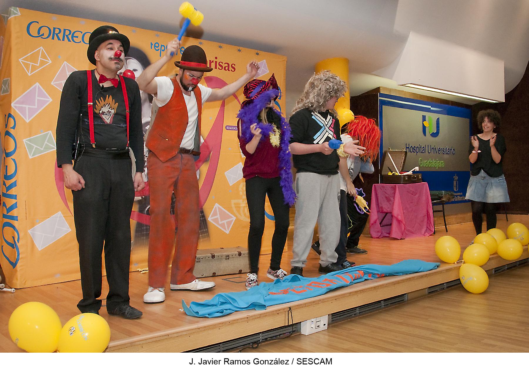 Los payasos Luigi Calvoroto y Pipa –Gusanito Rojo- han traído la risa y la magia a los niños ingresados en el Hospital de Guadalajara y a 80 niños y niñas del colegio de educación especial Virgen del Amparo, que han participado acompañados por padres y profesores, y han repartido obsequios por las habitaciones.