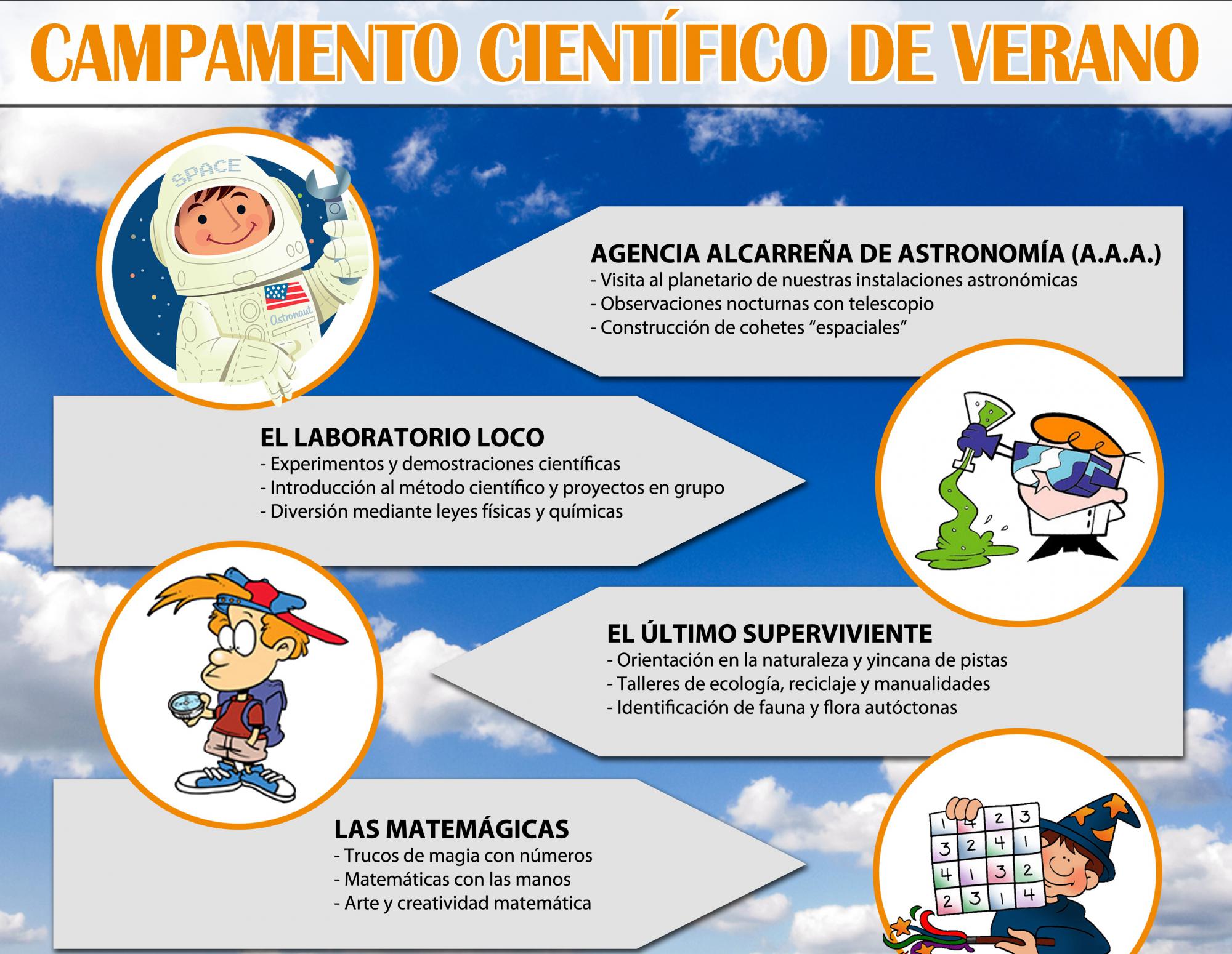 De la mano de la Academia Aprender y para niños de 6 a 12 años, las actividades se organizan en torno a cuatro talleres: la Agencia Alcarreña de Astronomía, el laboratorio loco, el último superviviente y las matemágicas