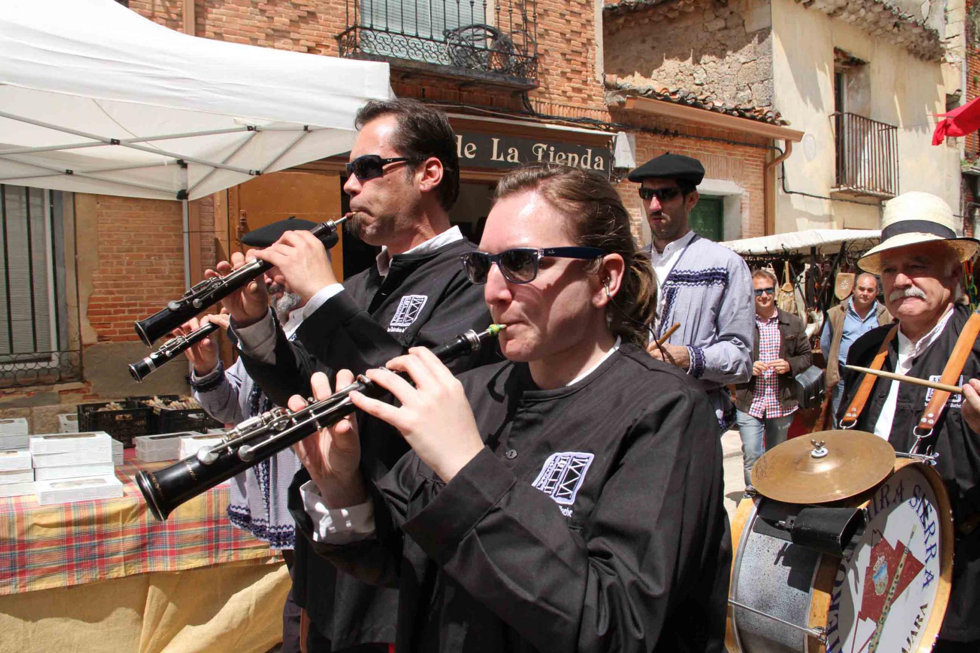 Ya por la mañana, el sábado, y por fin con sol, en Tamajón, la calle de Enmedio, que estrenaba firme adoquinado y redes, se llenaba con el color de la música, en esta ocasión procedente de la dulzaina y el tamboril de los Gaiteros Mirasierra. En la Plaza Mayor, frente al Ayuntamiento, y con más banderas y decoración que nunca, se dieron cita cuarenta y tres puestos artesanos, provenientes principalmente de Guadalajara y de Madrid, pero también de muchos otros lugares de España.