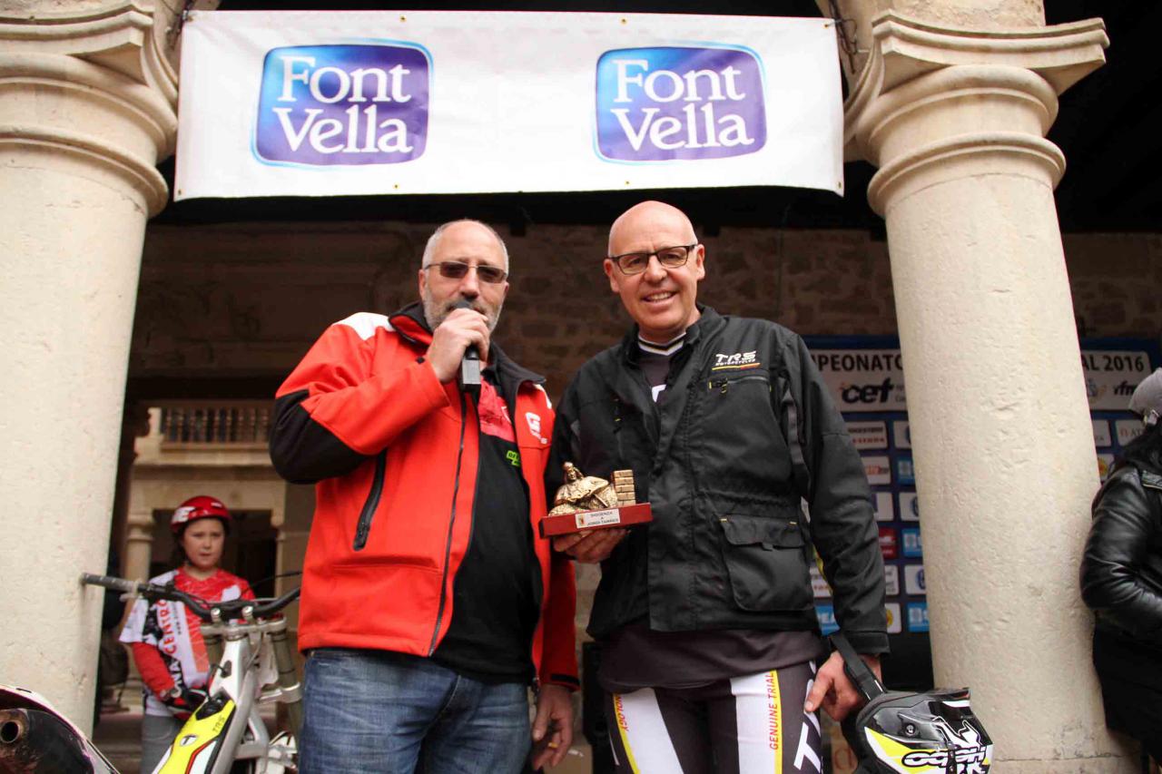 En Sigüenza ha estado presente otra leyenda del trial, Jordi Tarrés. El Motoclub Alto Henares le ha hecho entrega de un premio honorífico. “Después de muchos años retirado, me hace ilusión que aún se acuerden de mí”, decía en la ciudad. El gran campeón se mostró contento de venir a Sigüenza, “un lugar espectacular para la práctica del trial, con buena gastronomía, buenos hoteles”, apuntaba. Desde el punto de vista deportivo, Tarrés ha seguido a su piloto, Adam Raga. “Hemos logrado un segundo puesto que nos viene bien, en una prueba de nivel alto, de mundial, de diez, con zonas muy espectaculares para el público y muy difíciles para los pilotos”, terminaba Tarrés.