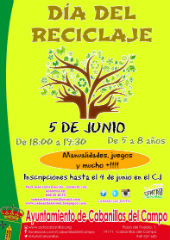 DÍA DEL RECICLAJE.- Se celebrará el domingo 5 de junio, de 18 a 19:30 horas. Se trata de una actividad infantil, para niños y niñas de 5 a 8 años, en la que se fomentará la reutilización y reducción de residuos, a través de un taller de manualidades, y de diversas dinámicas lúdicas. La actividad es gratuita, y las inscripciones pueden hacerse hasta el 4 de junio en el Centro Joven.