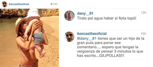El perfil público del portero en Instagram ha acudido a un hecho que no suele darse, puesto que Casillas no suele contestar a los comentarios de sus seguidores, sin embargo, esta vez sintió que debía de contestar a unas palabras del todo hirientes y que afectaban a su pequeño.