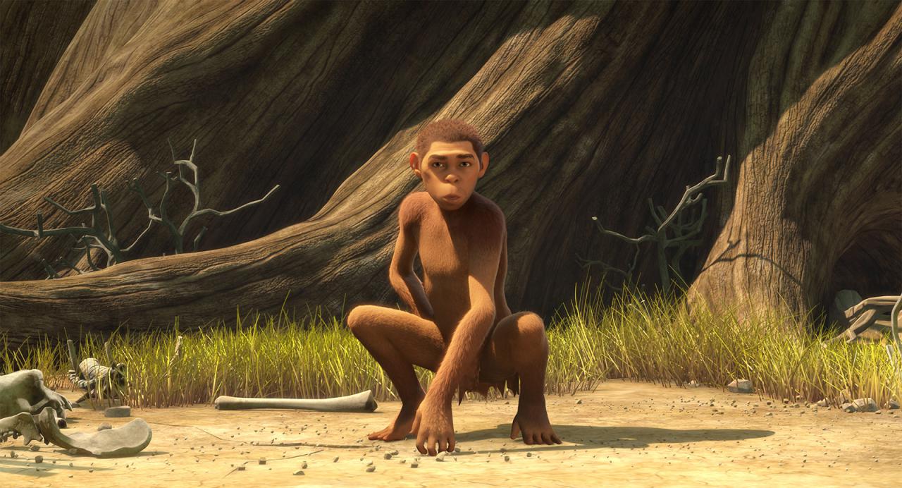 Sinopsis: Edouard, hijo mayor del rey de los simios, no es como los demás: más pequeño, mucho menos peludo y con una de sus extremidades inutilizada. Pero estas rarezas, unidas a su ingenio, también pueden significar que es el primer eslabón en la evolución de la especie. Resulta increíblemente ingenioso, descubre el fuego, la caza, el hábitat moderno y el amor, e incluso la esperanza. Generoso, quiere compartirlo todo. Revoluciona el orden establecido y acaba por conducir a su pueblo con humor hacia la evolución del ser humano.