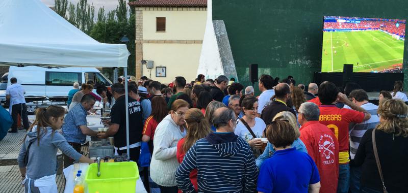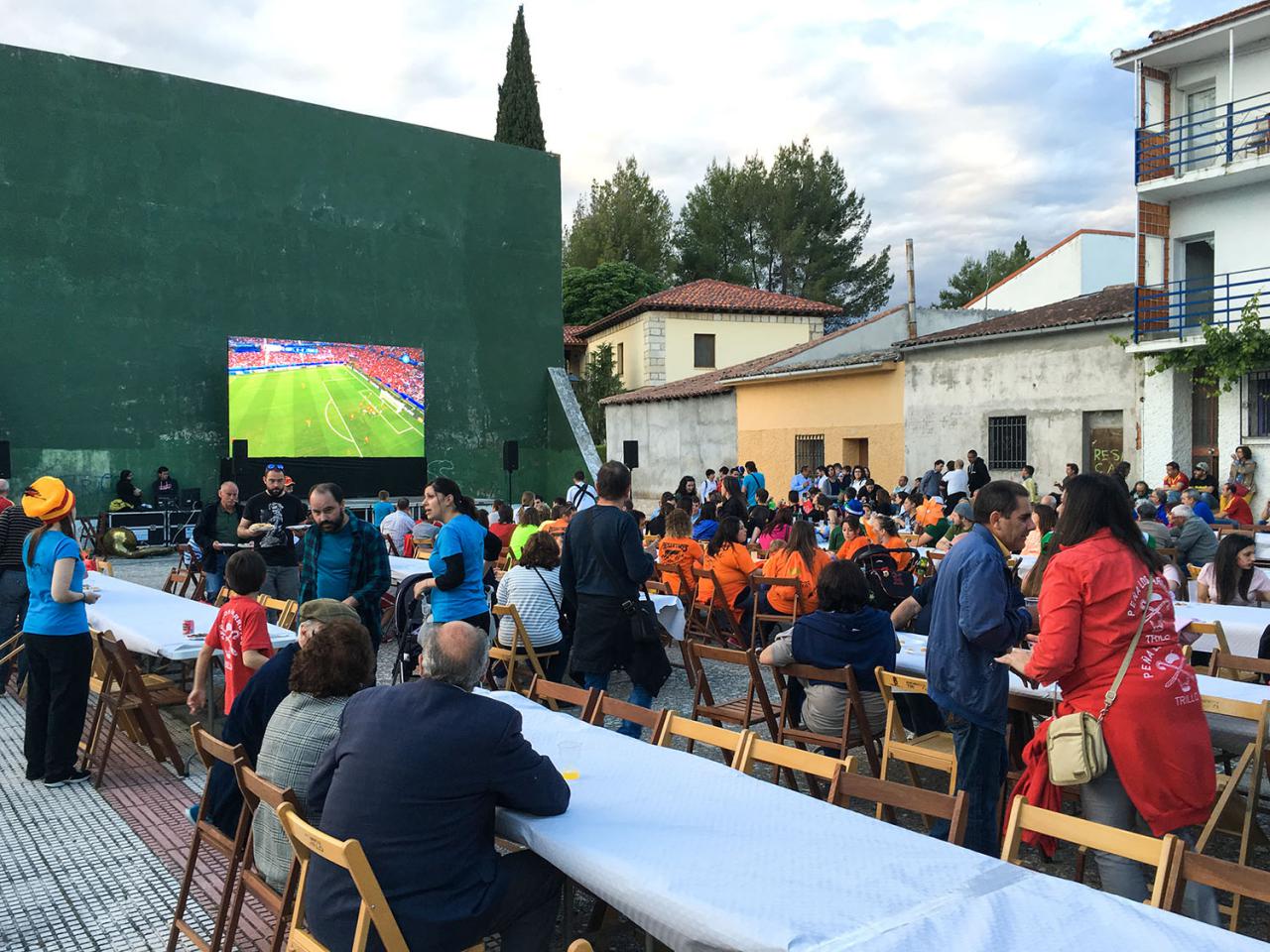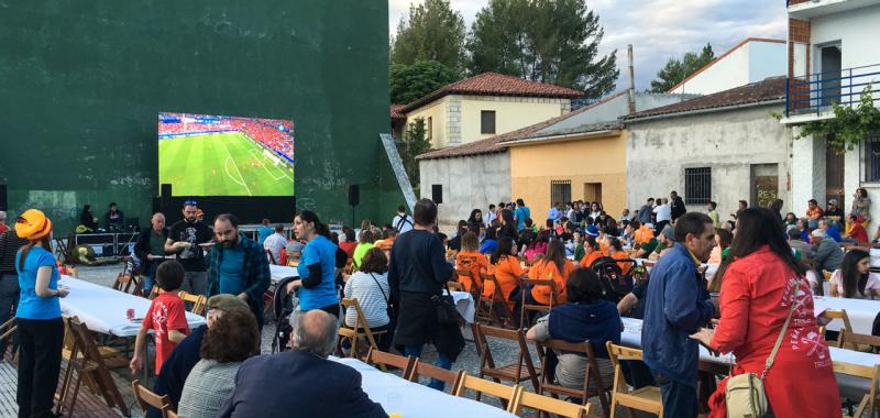 Uno de los actos más destacados, más allá del central de estos días -las Vacas por el Tajo, que reunieron a 10.000 personas-, ha sido la cena de peñas del viernes, que consiguió juntar a más de 500 personas en el frontón, donde se instaló una pantalla gigante para seguir el partido de la Selección Española, que coincidía en hora con la citada cena de las peñas. “Ver al pueblo unido cenando, disfrutando de la Selección, más de 500 personas, y ver a todas ellas cantando el primer gol de España no tiene precio. Creo que el aperitivo estuvo muy bien y ya la cena fue la guinda de una gran noche de fútbol”, asegura Pérez.