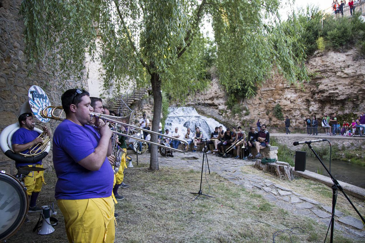 La música también ha gozado de gran protagonismo y de muy buena respuesta por parte del público. Tanto Orquesta Diamante como Grupo Liverpool, que desplegó una enorme infraestructura de luz y sonido en la madrugada del sábado al domingo, contaron con una gran afluencia de peñistas autóctonos y visitantes del entorno de Trillo. Por su parte, las charangas congregadas en el pueblo, Artistas del Gremio, Klandestinos y New Tocados, junto al grupo de batukada local, Trilamba, llenaron de ritmo las calles trillanas en el mediodía y también en la tarde-noche del sábado, cuando las tres primeras realizaron una gran exhibición a los pies de la cascada del río Cifuentes, que fue seguida por cientos de personas.