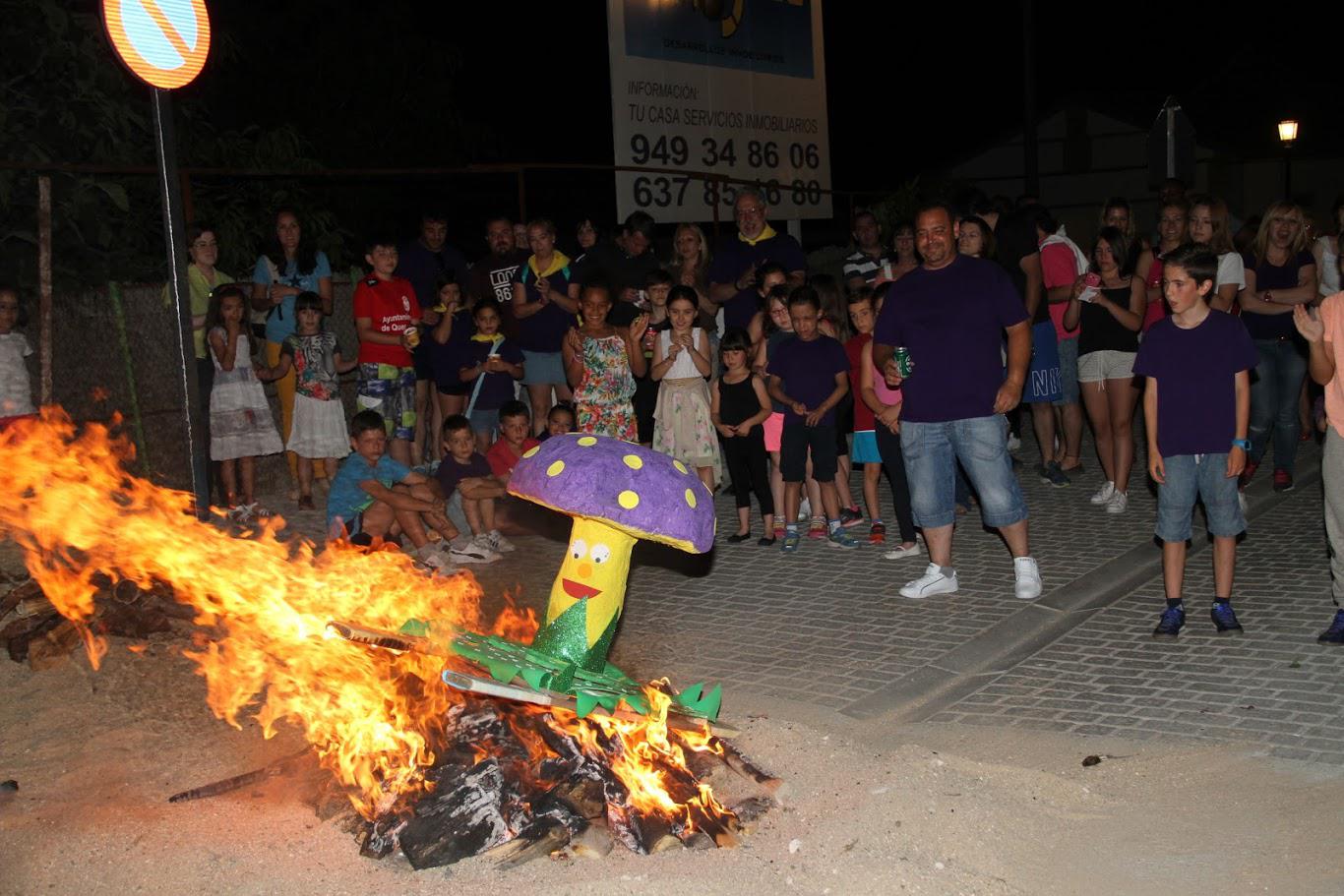 Los músicos animaron a unirse a la fiesta a niños y mayores, acompañando la procesión de la seta, que la peña Los Seteros había construido en estos días para quemarla en la hoguera de San Juan, y ahuyentar así los malos espíritus del pueblo, en la noche más corta del año.