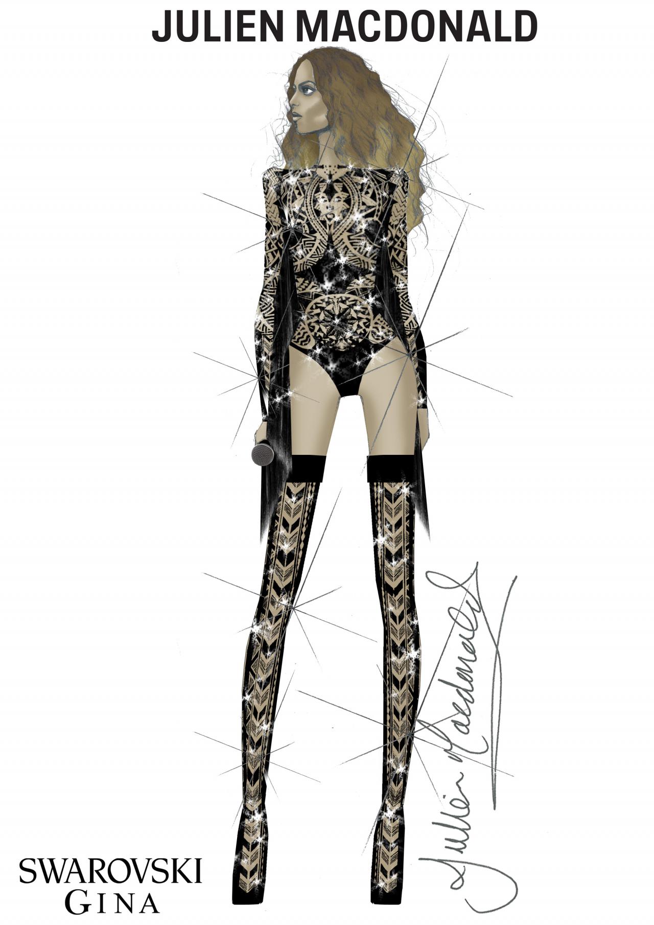 La icónica cantante se subió al escenario ataviada con un espectacular body diseñado y confeccionado a medida por el diseñador británico Julien MacDonald.