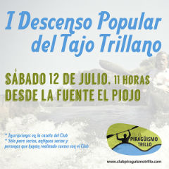 Este sábado, 12 de julio, a las 11 horas, el Club Piragüismo Trillo celebrará su primer Descenso Popular del Tajo, una cita que, en esta ocasión está especialmente dirigida a nuestros amigos y vecinos trillanos
