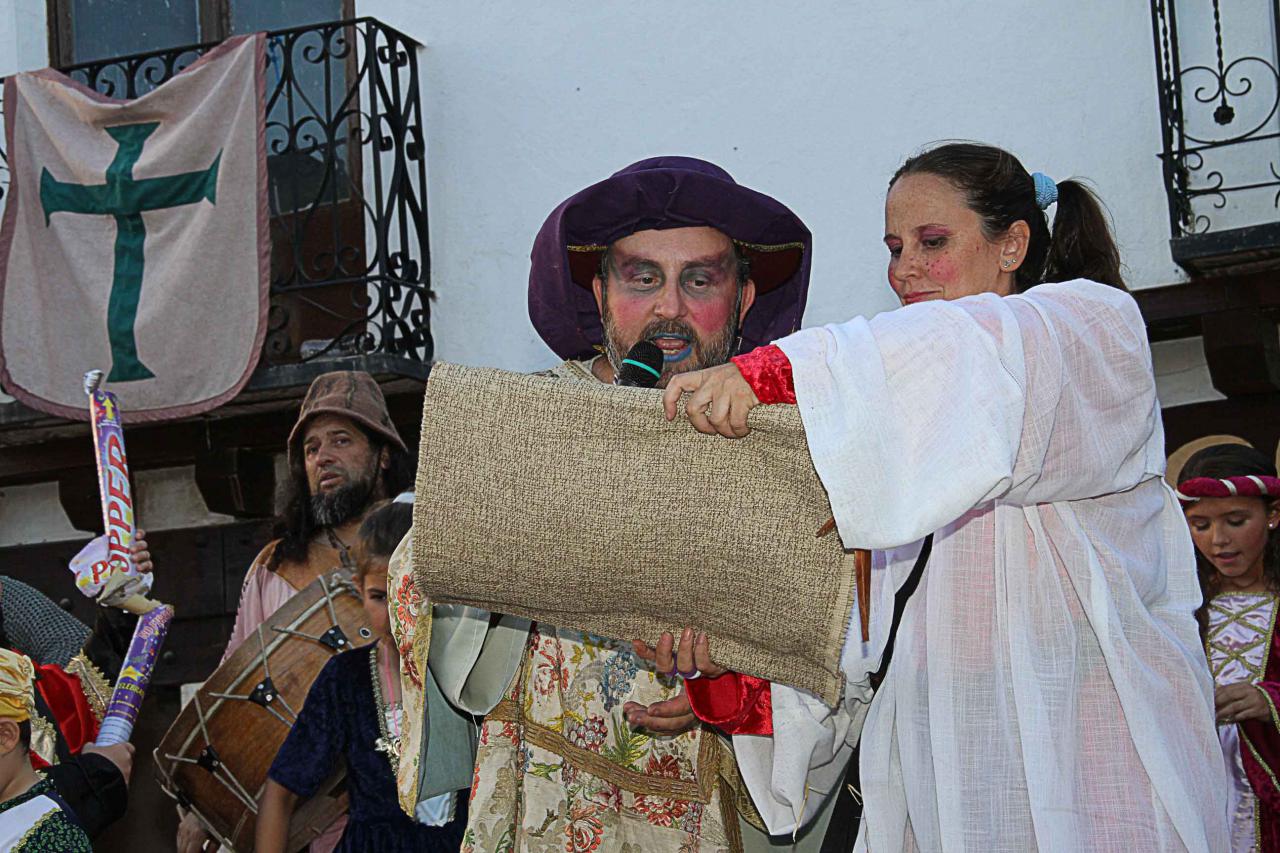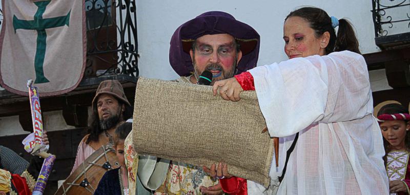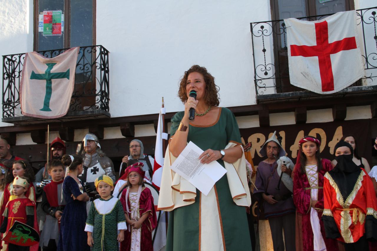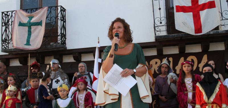 Sobre el escenario que iba a acoger las actuaciones a lo largo del fin de semana, tomaba la palabra Elena Gordon, alcaldesa de Almonacid, para presentar las jornadas y también para darle paso al pregonero. Ante una Plaza expectante, la regidora dio las gracias al pueblo por su hospitalidad, implicación y colaboración en la organización de las Jornadas Medievales. Además, Gordon felicitó al ganador del concurso de carteles, primero que se convoca para elegir cartel anunciador, por el trabajo con el que se ha publicitado el evento. Asimismo ilustraba los programas de mano que orientaron al público. “Agradecemos a Gregorio Carlos Alda, en primer lugar su trabajo, y también la donación que ha hecho del premio al que se había hecho acreedor para un propósito altruista”, ensalzó la regidora.