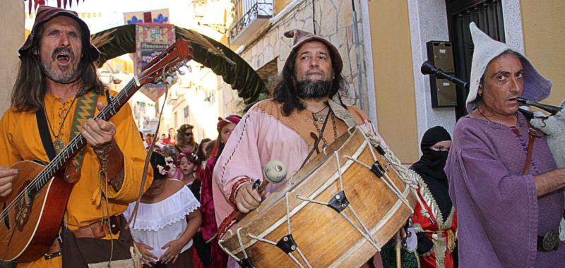 El viernes, y después de que quedaran instalados hasta 55 puestos de mercaderías, principalmente artesanos, comenzaba el pasacalles. En el mismo corazón de la villa, los almorcileños se congregaron en torno a los músicos. Gaita, tambor y zanfona en mano, el grupo 'Rapax' iniciaba un sonado itinerario con el que la villa viajaba en el tiempo hacia los siglos XV y XVI, seguido por decenas de lugareños y visitantes. La música de época embellecía los edificios y las calles de Almonacid, hasta llegar al mismo centro de la Plaza Mayor, al filo de las ocho de la tarde.