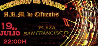 El 19 de julio, la Plaza San Francisco de Cifuentes se convertirá en una sala de conciertos al aire libre. Será entonces cuando la Asociación Recreativo Musical de Cifuentes deleitará a los cifontinos y visitantes con su concierto de verano, el cual comenzará a las 22,00 horas, dirigido por D. Francisco López Tomás.