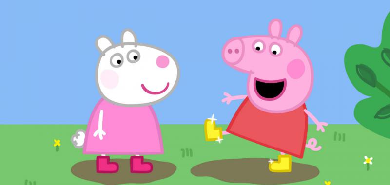 A Peppa le encanta saltar una y otra vez en los charcos de barro llevando puestas sus queridas Botas de Oro, aunque Suzy piense que son solo unas botas amarillas normales y corrientes.