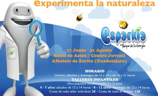 Desde mediados del pasado mes de junio, todos los viernes, sábados y domingos de 12 a 14 y de 19 a 21 horas se puede ya disfrutar, en las instalaciones del Centro Juvenil de Albalate de Zorita, de la muestra temática “Experimenta la Naturaleza” que nace, al igual que ocurriera el año pasado, de la mano del proyecto Esparkia “El Parque de la Energía”.