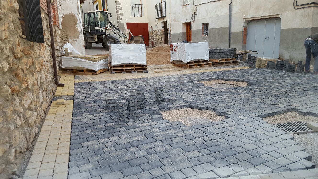 El tipo de pavimento elegido es en todos los casos el adoquinado antideslizante y bicolor, en tonos ocre y gris, por ser el que más destaca la monumentalidad de Pareja, además del más práctico, puesto que permite reparar posibles averías sin necesidad de parches.