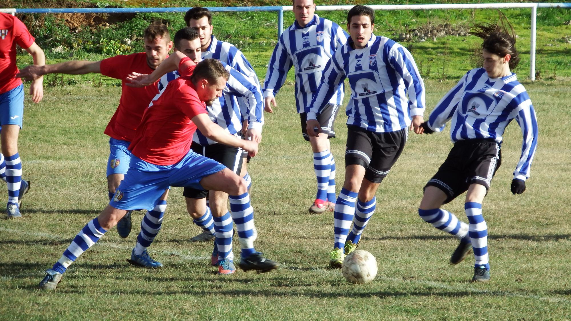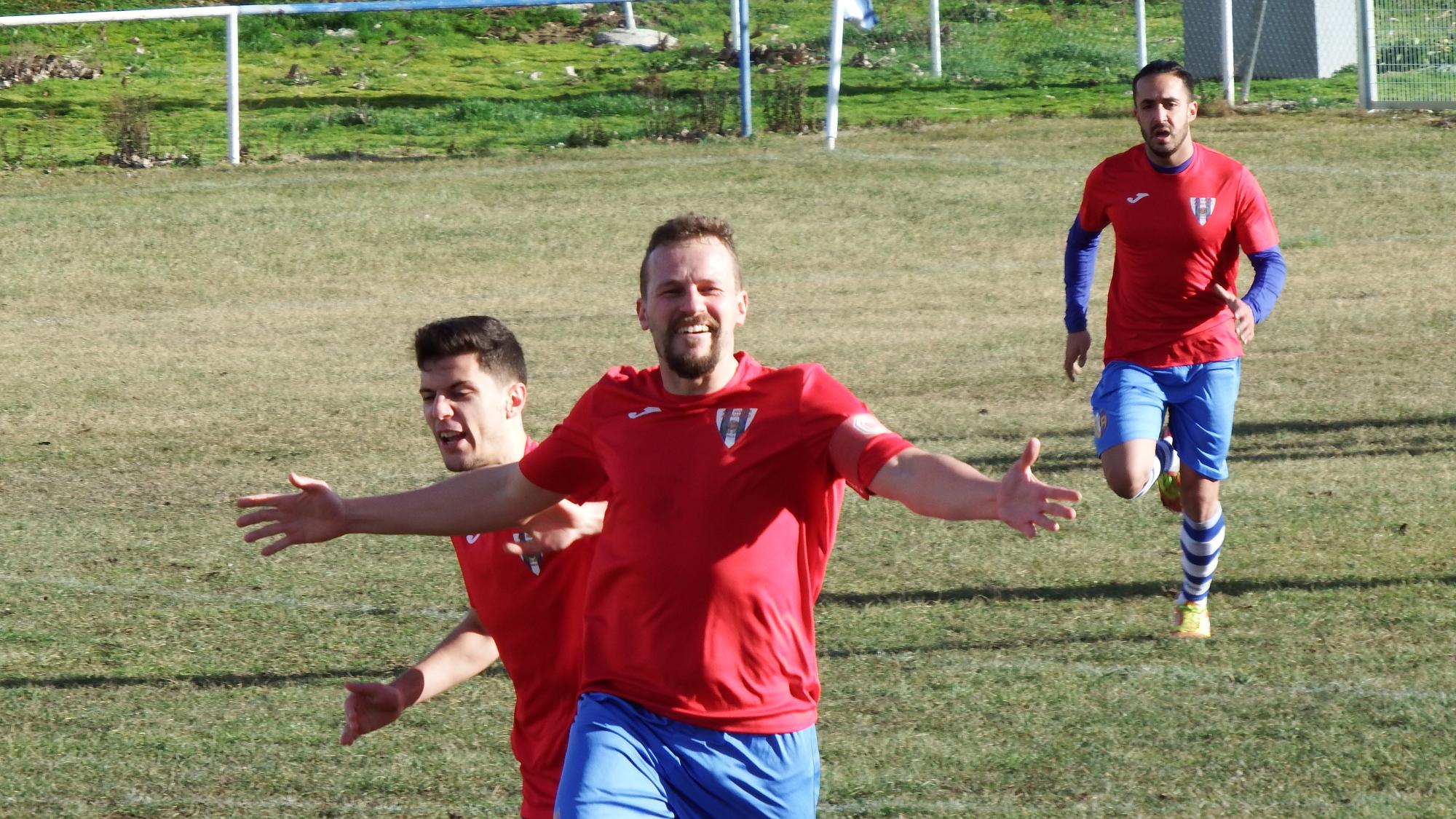 Pero tal era el dominio rojillo (color del Hogar en esta oportunidad), que en una jugada en la que varios jugadores prolongan de cabeza el esférico, es Valiente quien acierta a rematar con precisión, y batir al portero local, Ionut (minuto 13).
