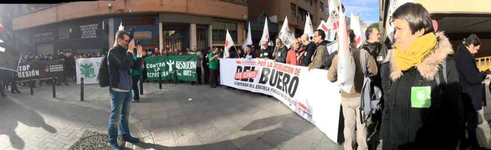 "Los 5 del Buero", 4 profesores y un activista de Guadalajara que son juzgados por participar en una protesta contra los recortes en educación, han defendido su inocencia en el juicio en el que solo uno de los acusados ha sido identificado por los demandantes como participante en la protesta.