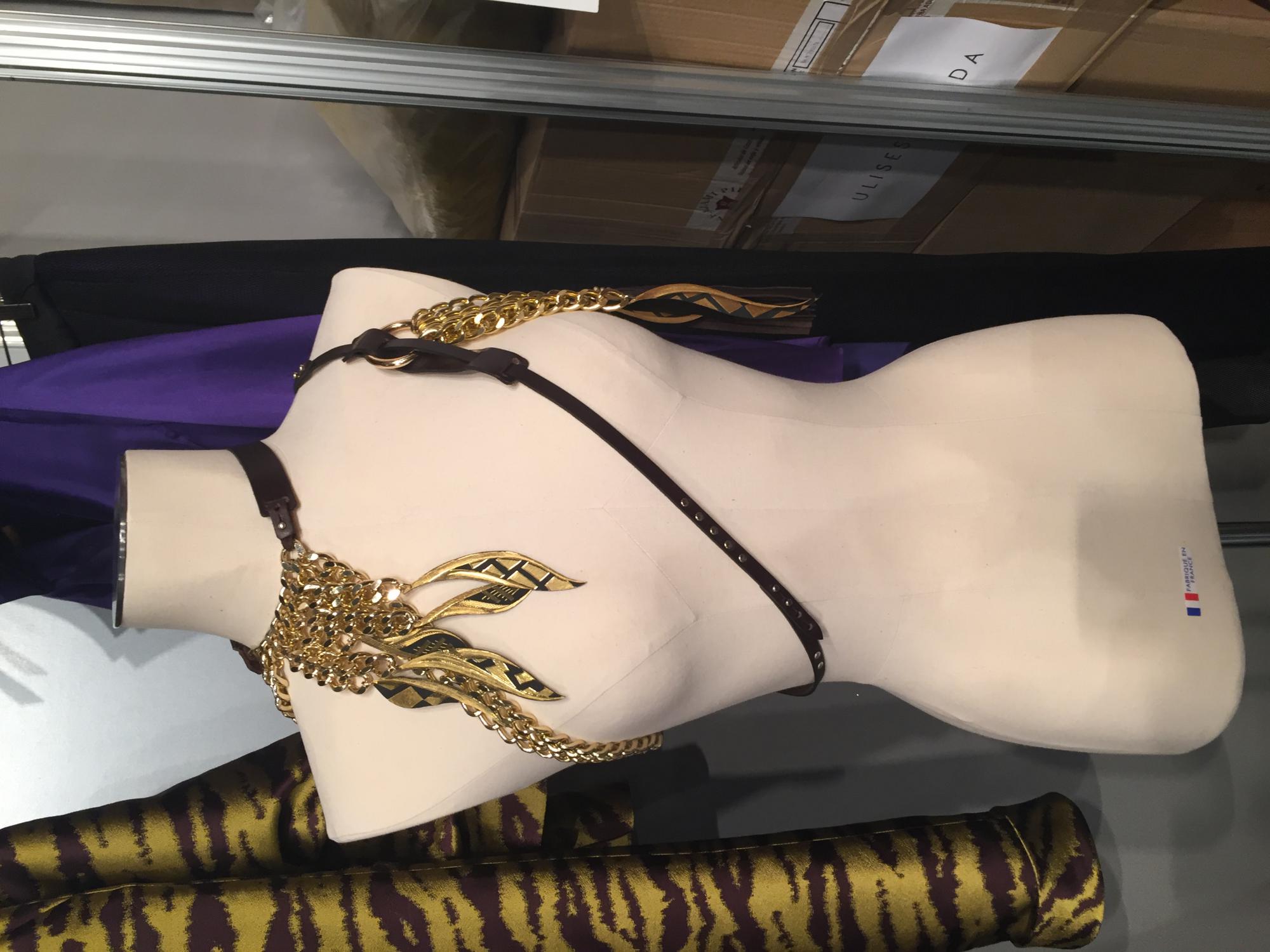 Las espectaculares piezas de joyería que han llevado las modelos han sido realizadas para la ocasión por el maestro artesano Óscar Martín Garijo, con la ancestral técnica del damasquinado, también conocida como ‘el Oro de Toledo’.