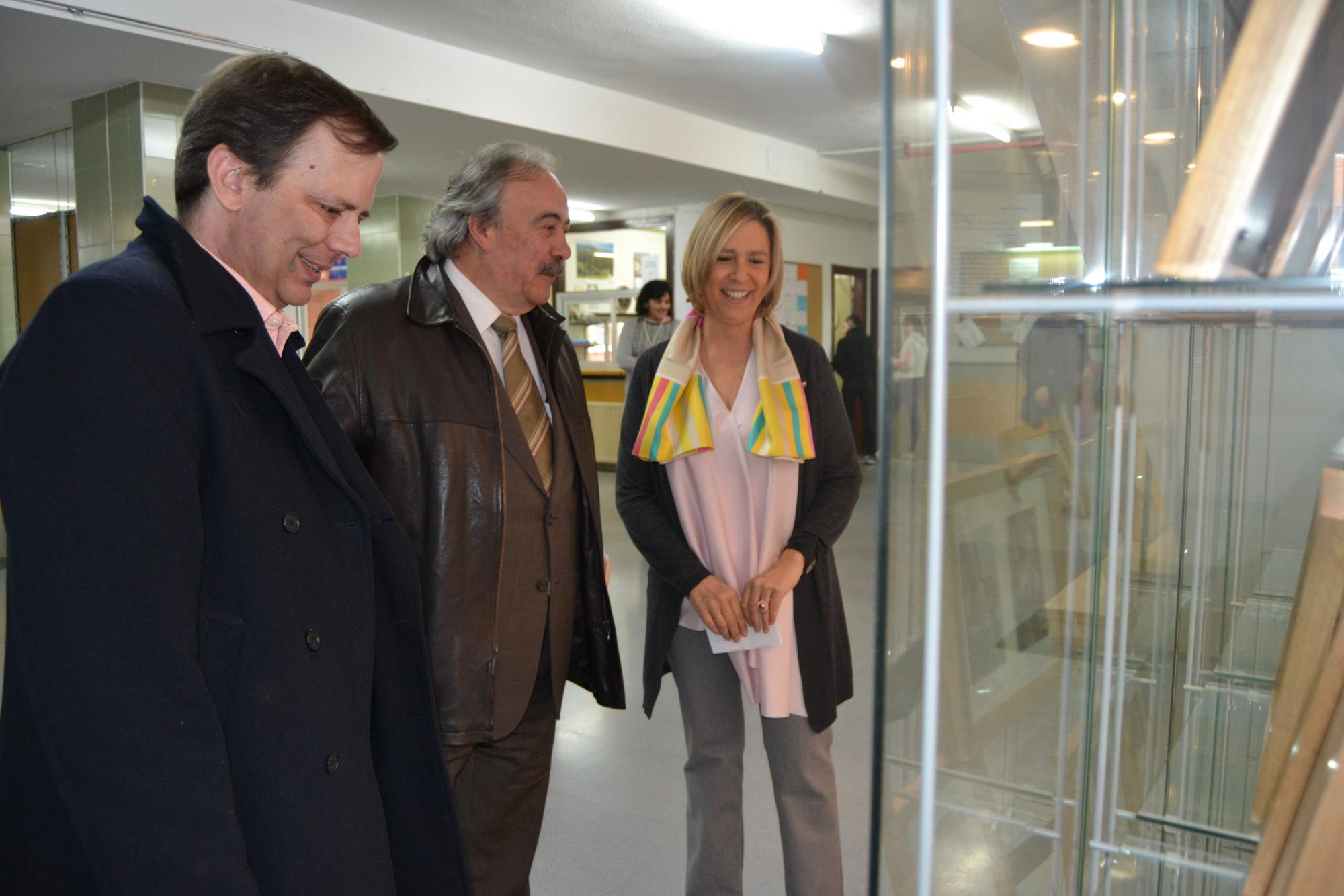 El hijo de Buero, junto al director provincial de Educación, Cultura y Deportes, Faustino Lozano y la directora del centro, Elena Tecedor, han comentado algunas de estas imágenes y de las cartas que se exponen.