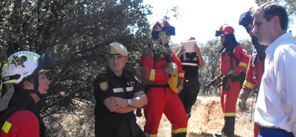 El alcalde de Guadalajara, Antonio Román, ha visitado esta mañana a la sección del Batallón de Intervención en Emergencias de la U.M.E. que durante el día de hoy realiza en el Poblado de Villaflores un ejercicio de instrucción y adiestramiento para el perfeccionamiento de sus capacidades en la lucha contra incendios forestales.