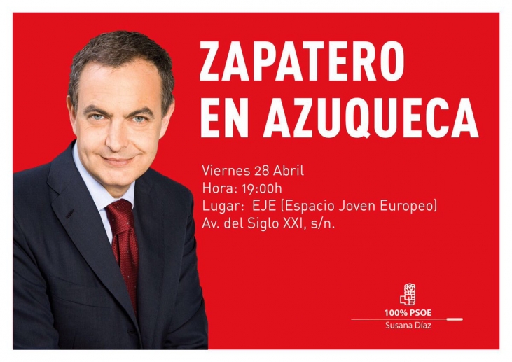 José Luis Rodríguez Zapatero, ex presidente socialista del Gobierno, participará en un acto el próximo viernes 28 de abril en Azuqueca de Henares (Guadalajara) en apoyo a la candidatura de Susana Díaz a las Secretaría General del PSOE.