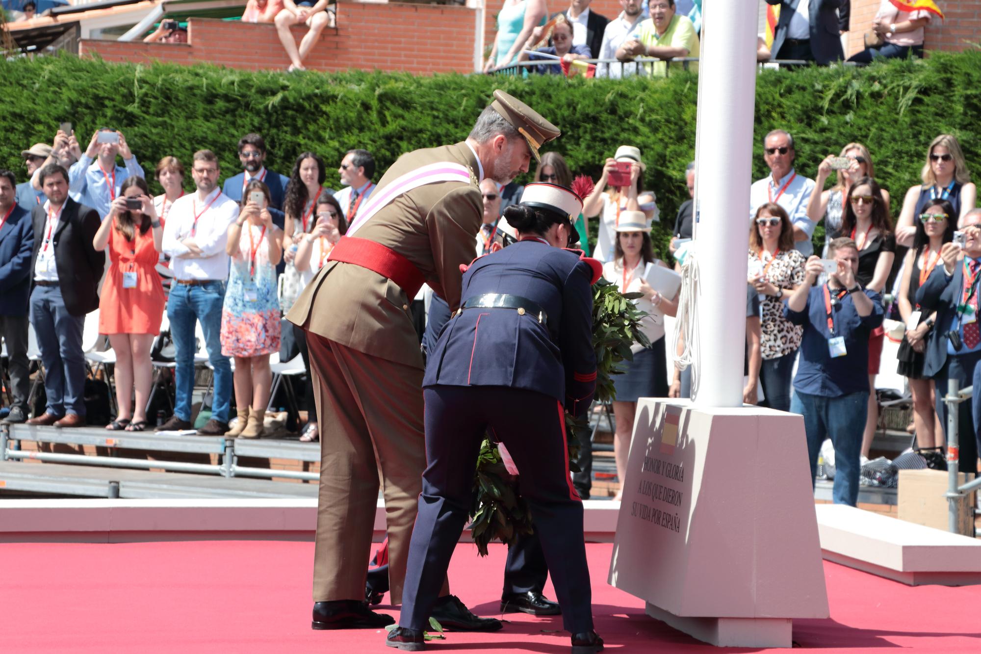 A continuación se ha izado la bandera y ha comenzado el homenaje a los fallecidos en acto de servicio, con la intervención de familiares de seis militares. Entre ellos han estado presentes los familiares de los militares Juan Bonel Suárez, subteniente del Ejército de Tierra, y del sargento del Ejército del Aire Francisco Javier Cardona Gil, fallecidos en el accidente del Yakolev-42.