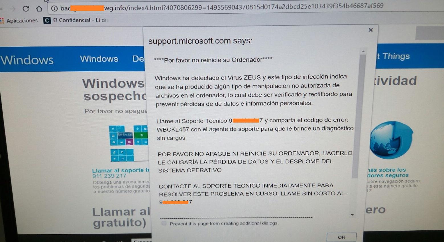 Alertan de un falso soporte de Windows que inutiliza equipos