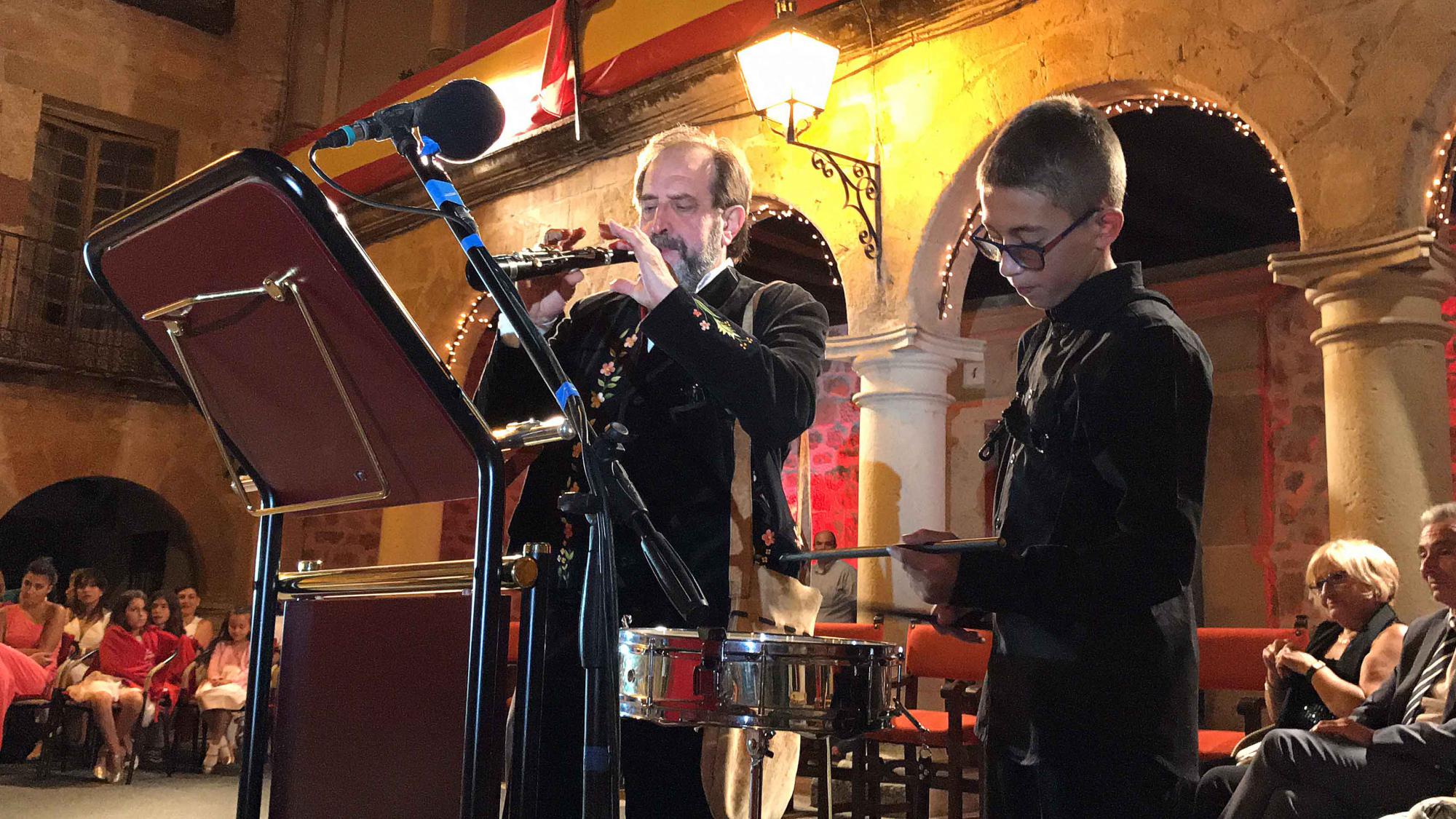 Tomó entonces la palabra el pregonero, Carlos Blasco, botero y tamborilero. En un emocionado y largo pregón que comenzó dando las gracias a las autoridades municipales por haberle propuesto como pregonero, dejó clara su inmensa pasión por la música, recordando, por ejemplo, que talló sus primeras baquetas “con unas ramas de noguera que teníamos en el patio de casa”. Y también que tocó su primer pasodoble, en Horna, con trece años, con el panadero, los hijos del frutero, y el hijo del caminero. “Ascendí galones en el 85, hace 32 años cuando mi dulzainero, José María Canfrán, confió en mi para acompañarle en las músicas tradicionales. Nos dio la alternativa el Nuevo Mester de Juglaría en esta misma Plaza”, un grupo que precisamente va a actuar en las fiestas de San Roque. En su declamación, hubo muchas más menciones a Canfrán.
