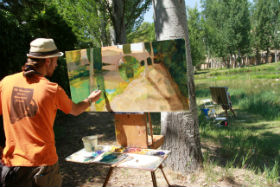 A partir de las 17:00 horas de la tarde de ayer sábado, la Plaza Mayor empezaba a acoger el trabajo de los pintores que habían resumido lo más bonito de Trillo en sólo unas horas.