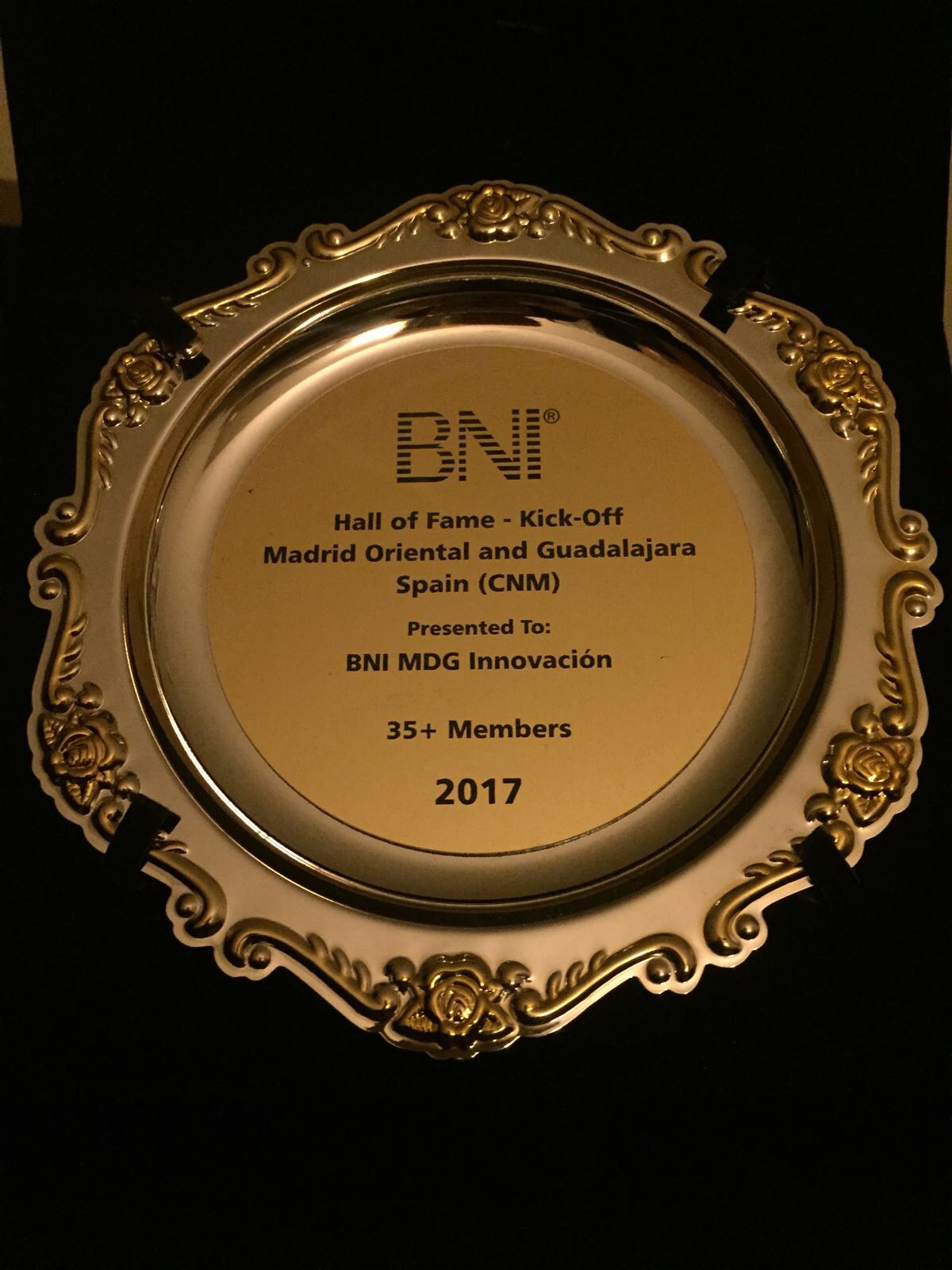 BNI Innovación Guadalajara, se encuentra ya en los “Hall of Fame” de BNI. Este premio se entrega a los pocos grupos del mundo que llegan a más de 35 miembros en su primer mes de vida.