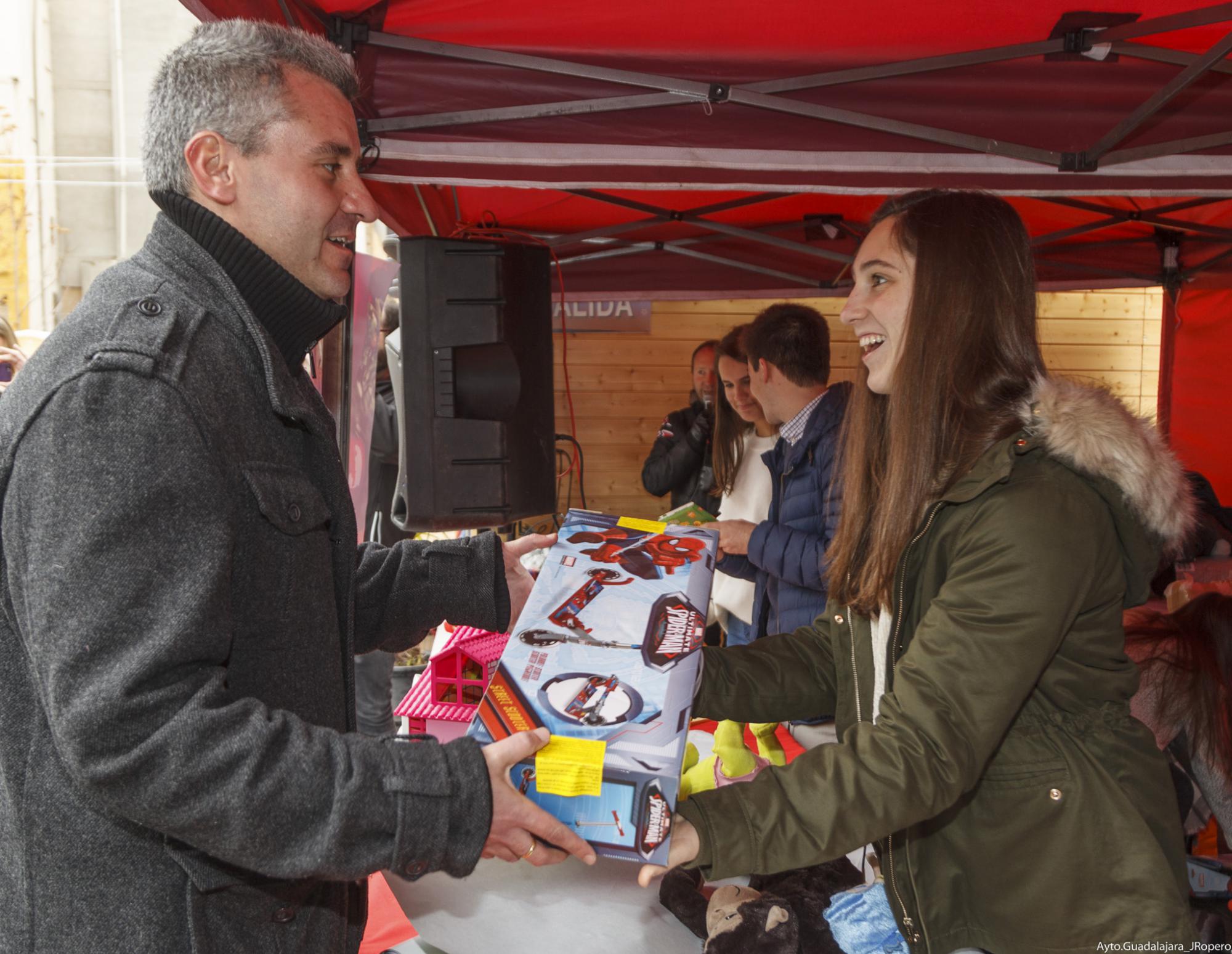 El Ayuntamiento de Guadalajara ha participado un año más en la iniciativa denominada “Calle Mayor Solidaria. Danos un juguete nuevo para ellos”. Incluida en el programa de actividades de esta Navidad, persigue que los ciudadanos se involucren en un bonito proyecto que tiene como fin que ningún niño se quede sin un juguete el día de Reyes, de la mano de Cáritas Diocesana.
