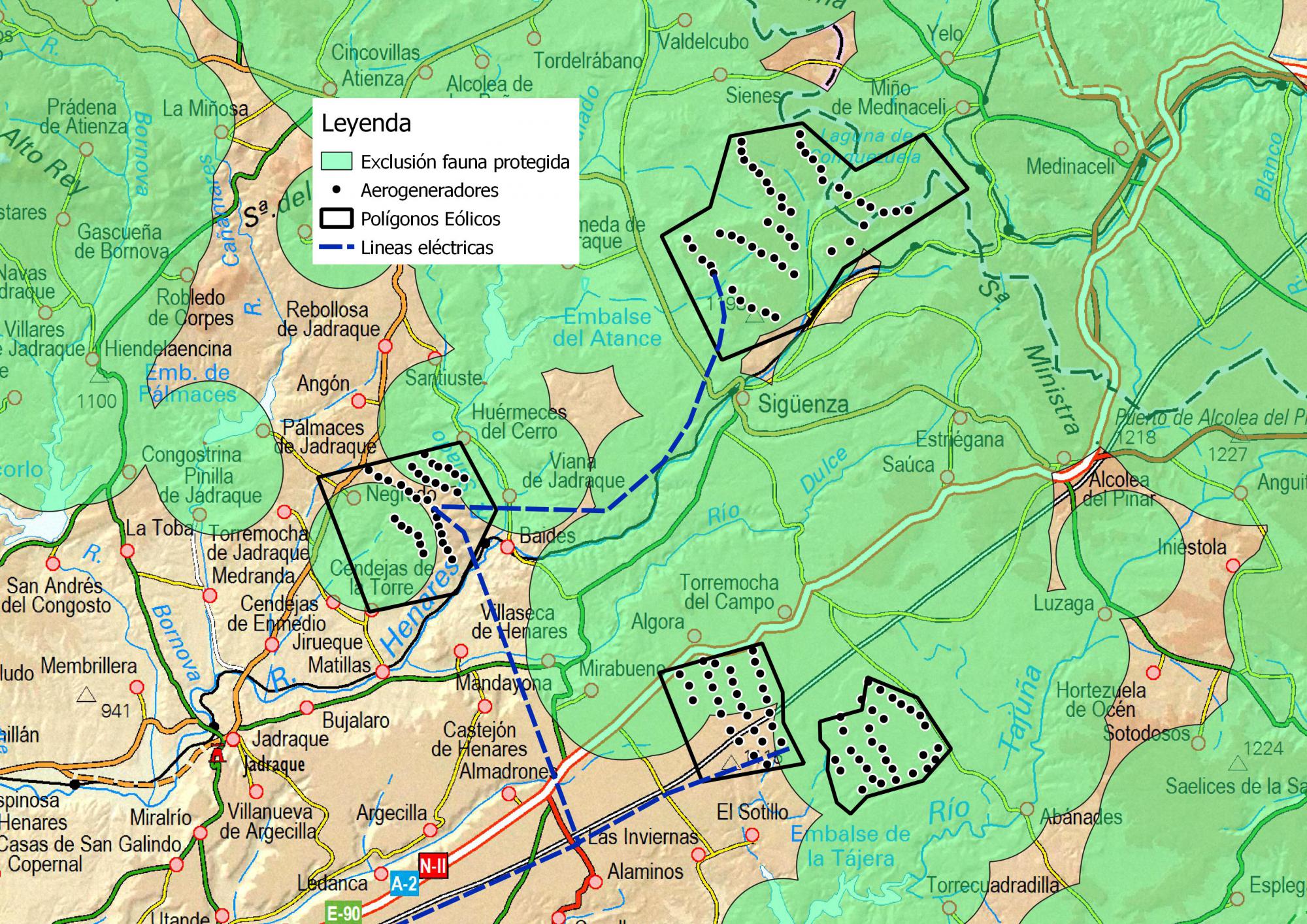 Ecologistas en Acción de Guadalajara ha presentado alegaciones a los proyectos de parques eólicos Piedra Blanca (Sigüenza), La Sierrezuela (Negredo, Baides, Huérmeces del Cerro y Viana de Jadraque), Los Caveros (Torremocha del Campo) y El Castillar (Algora y Torremocha del Campo), al considerar graves carencias en la documentación presentada por el promotor y suponer un impacto ambiental, social y paisajístico muy alto y, en algunos aspectos, irreversible.