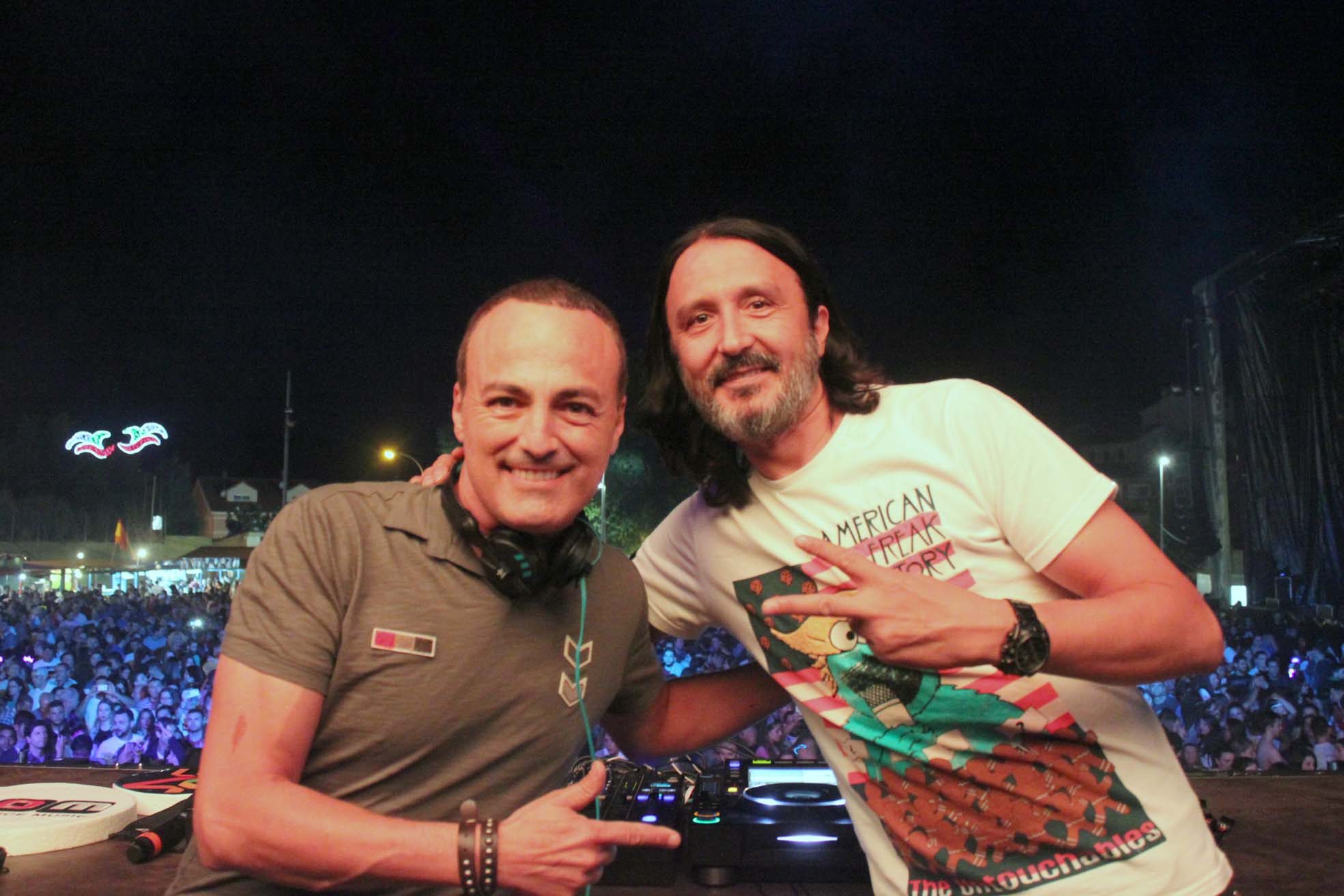 Con puntualidad británica, a las 3 en punto de la madrugada arrancó el evento conducido por los "pinchas" de la emisora musical Luis López y Cristian San Bernardino. Impresionantes gogós caracterizadas de indias e indios, cañones que inundaban el Ferial de confeti y serpentinas, fuegos artificiales, proyecciones de luces... todo conformaba un espectáculo integral en el que el sonido disco envolvía la localidad.